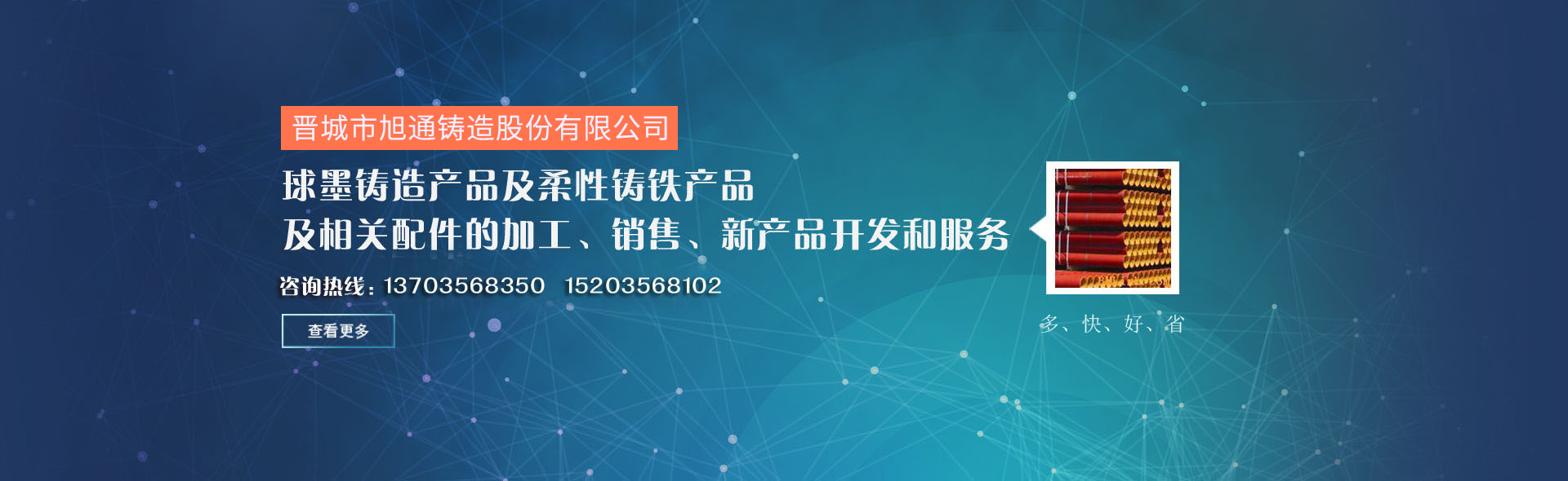 晉城市旭通鑄造股份有限公司是一家致力于球墨鑄造產(chǎn)品及柔性鑄鐵產(chǎn)品及相關(guān)配件的加工、銷(xiāo)售、新產(chǎn)品開(kāi)發(fā)和服務(wù)的網(wǎng)絡(luò)平臺(tái),以“多、快、好、省”為服務(wù)宗旨,多種選擇、快速定位、優(yōu)質(zhì)產(chǎn)品、省錢(qián)省力,為客戶(hù)提供精準(zhǔn)服務(wù)......